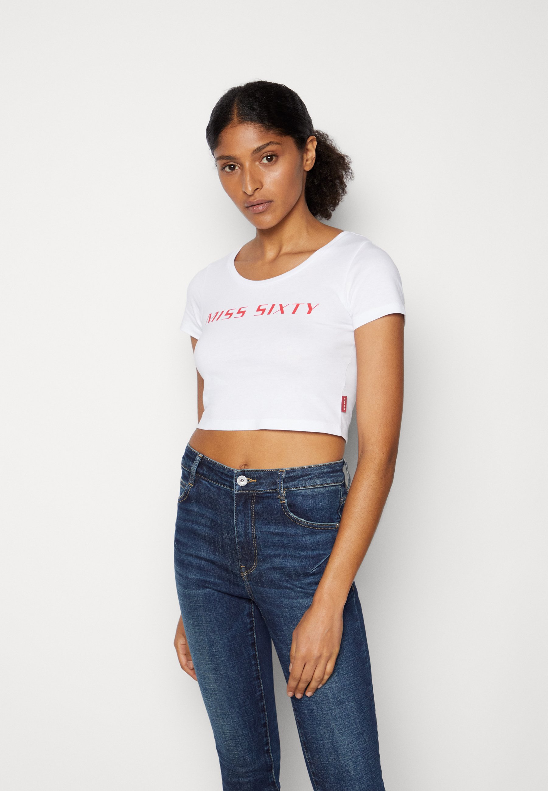 Miss Sixty Crop Tee T Shirt Print White Weiss Zalando De